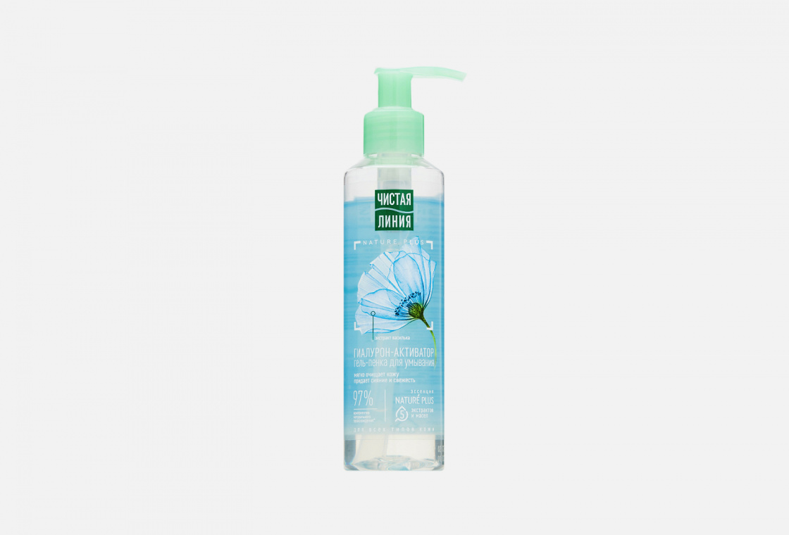 мягко очищает кожу и придает сияние и свежесть. Сбалансированный состав содержит 97% компонентов натурального происхождения*, среди которых: эссенция из пяти экстрактов и масел NATURE PLUS (экстракт вербены, экстракт пиона, масла миндаля, льна, оливы), а также экстракт василька и растительный гиалурон-активатор. Экстракт вербены поддерживает саморегуляцию кожи, обладает детокс-эффектом и тонизирует. Экстракт пиона успокаивает и освежает цвет лица. Масло миндаля, насыщенное жирными кислотами, витаминами Е и F, питает и разглаживает поверхность кожи. Льняное масло смягчает и успокаивает. Ферментированное оливковое масло богато мощными природными антиоксидантами, так необходимыми коже для защиты от преждевременного старения. Активные натуральные компоненты придают упругость, обеспечивают уход за кожей во время умывания, сохраняют уровень увлажненности. Экстракт василька тонизирует кожу и повышает ее эластичность. Растительный гиалурон-активатор отвечает за многовекторную стратегию увлажнения кожи. Сразу после умывания кожа очищена, увлажнена, готова к тонизированию и нанесению крема. Совместное использование с гель-кремом для лица